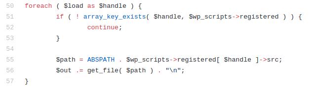 There is a well-defined list ($wp_scripts), that can be requested by users as part of the load[] parameter. If the requested value exists, the server will perform an I/O read action for a well-defined path associated with the supplied value from the user.